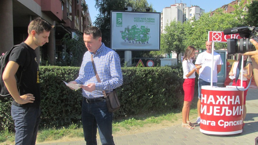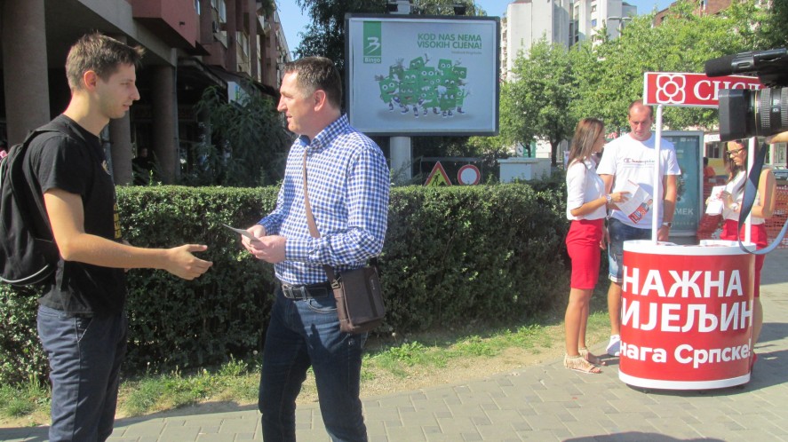 Градски одбор СНСД-а Бијељина поставио је данас у центру града инфо-штанд на којем ће кандидати у директном контакту грађанима да представљају страначку платформу и дијеле промотивни материјал.