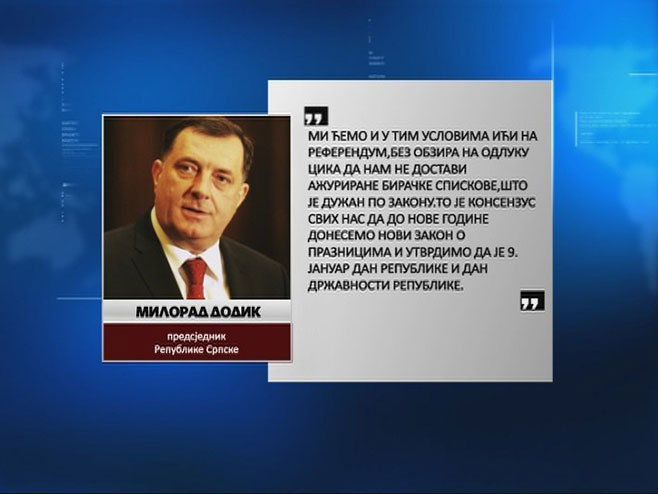 Предсједник Републике Српске Милорад Додик поручио је да ће референдум о Дану Републике бити одржан, да ту нема ни трунке ината и истакао да неће дозв...